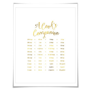 Cooking Measurements Conversions Gold Foil Print. 7 Foil Colours. Cutlery. Cooking Kitchen Poster Chef Cook Gift