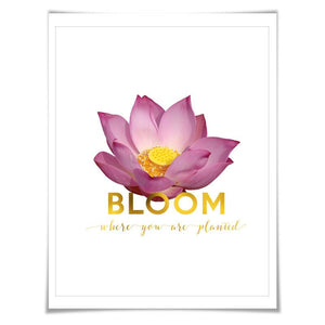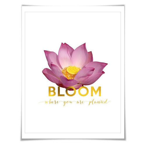 Bloom Where You Are Planted Gold Foil Art Print. 3 Sizes. Flower Poster. Floral Art. Water Lily. Inspirational Quote.
