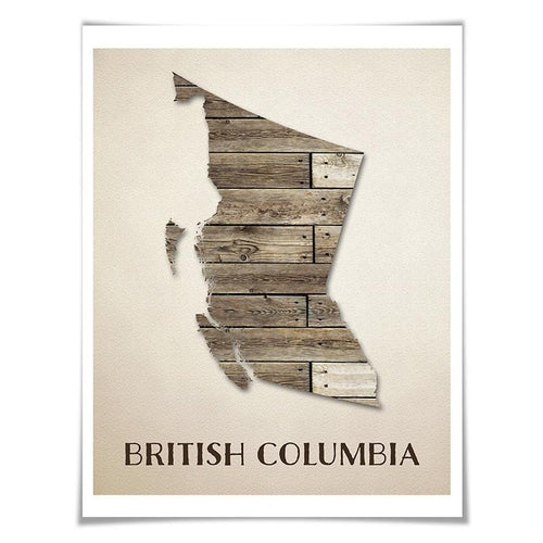 British Colombia Map Art Print. 5 Sizes. Travel Poster. Custom Province. Canada Map. Rustic Art Home Decor.