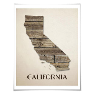 California Map Art Print. 5 Sizes. Travel Poster. Custom State. USA Map. Rustic Art Home Decor.