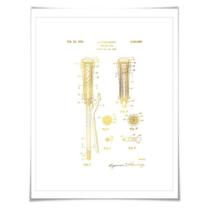Curling Iron Gold Foil Patent Illustration. 7 Foil Colours. Beauty Salon Art Print. Hairdresser Poster.