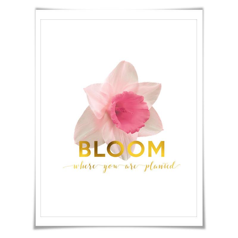 Bloom Where You Are Planted Gold Foil Art Print. 3 Sizes. Flower Poster. Floral Art. Narcissus. Inspirational Quote.