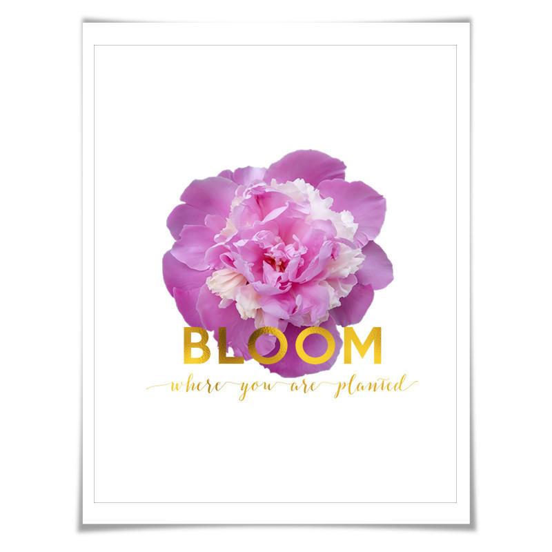 Bloom Where You Are Planted Gold Foil Art Print. 3 Sizes. Flower Poster. Floral Art. Peony. Inspirational Quote.